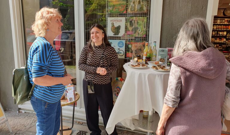 Bei Sonnenschein luden wir zur Verkostung im Weltladen A Janela ein. Unsere Gäste probierten faire Pestos, Tees und Gummibärchen, nahmen Rezepthefte mit und erhielten spannende Infos rund um die Faire Woche und die Vielfalt im Fairen Handel.