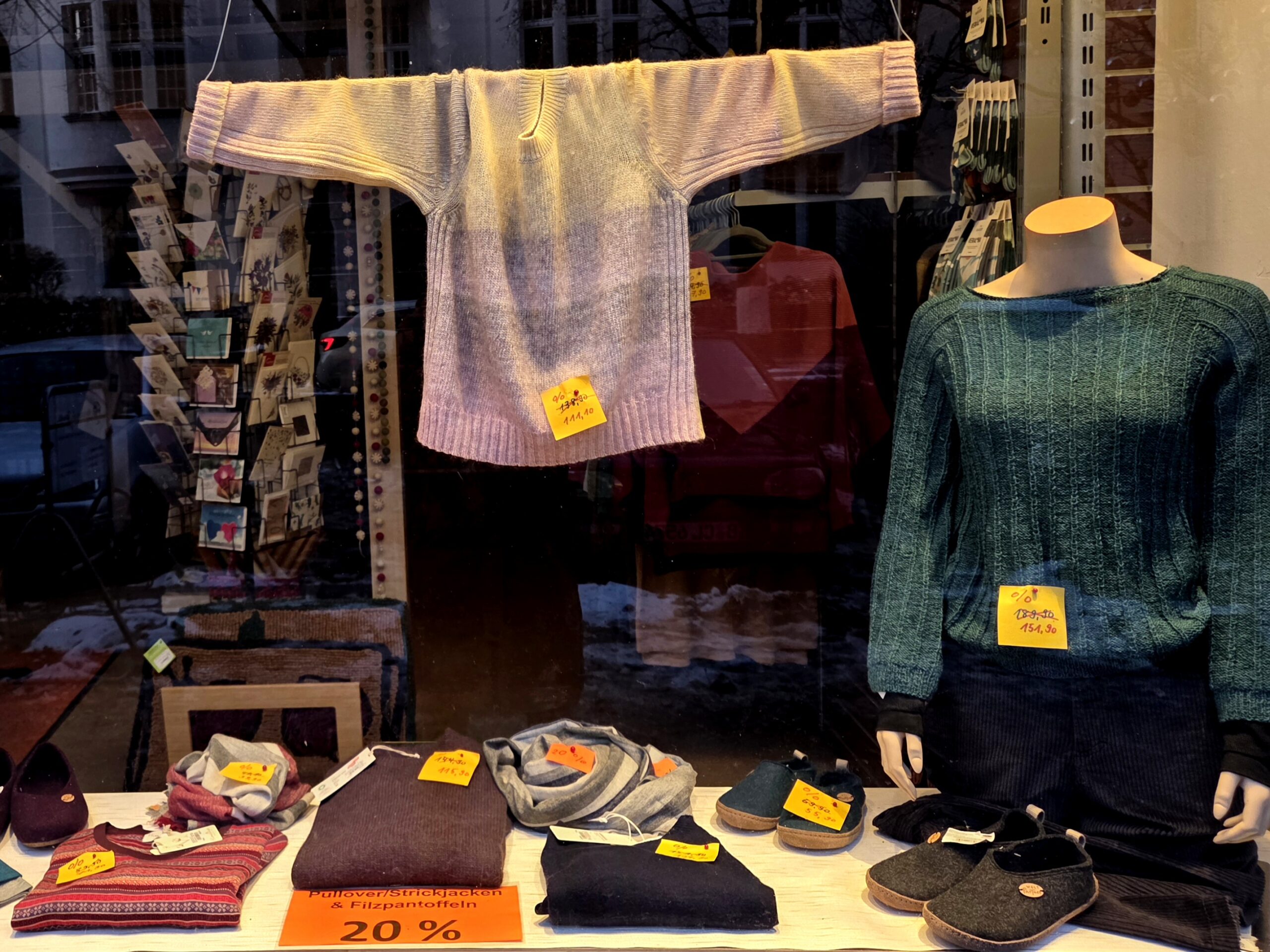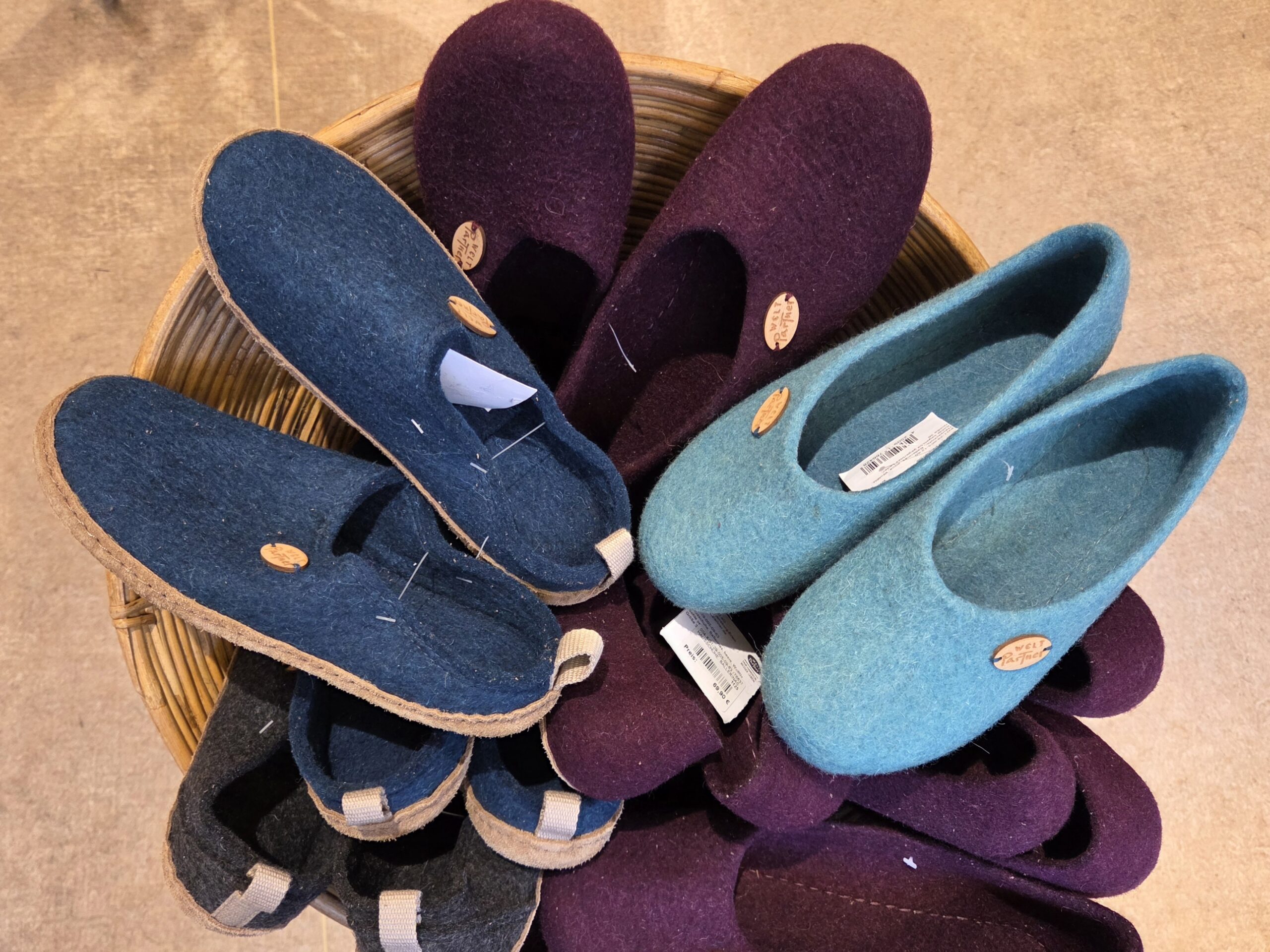 Im Sonderfairkauf öko-faire Pullover von Madness und Himalaya, Wollschals von Frida Feeling und die beliebten Filzpantoffeln von Weltpartner 20 % güstiger
