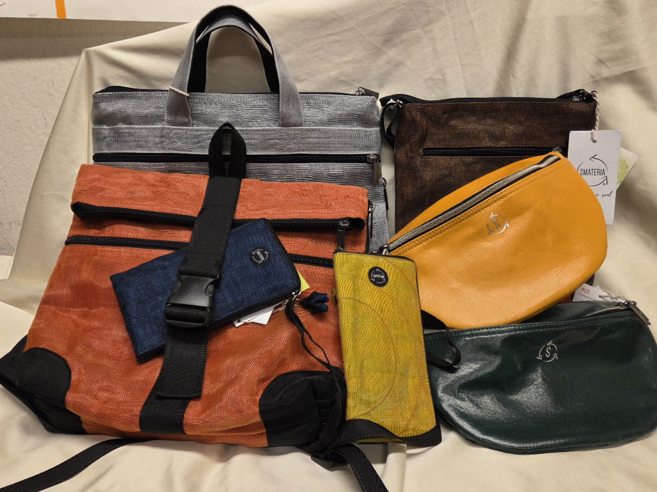 Durch die hohe Qualität und den italienischen Chic der Kollektion ist Smateria als Modeunternehmen anerkannt. Das Unternehmen beschäftigt rund 90 MitarbeiterInnen und ist anerkanntes WFTO Mitglied. Alle Produkte sind zu 100% vegan und frei von tierischen Inhaltsstoffen.